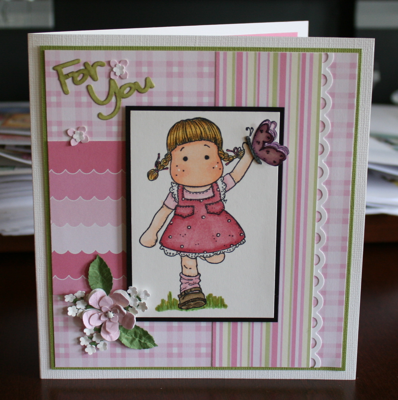 The challenge for week 2 at Just Magnolia challenge blog is to use the colors pink and green and one Magnolia of Sweden stamped image…here is my entry….