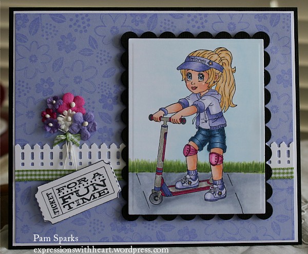 For the Inky Impressions challenge today I colored up Spunky Scooter Lili…ticket for a fun time!