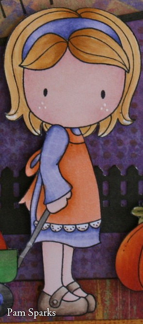1. This scene you created is just fabulous and the colors are so vivid. Emma and the pumpkins are colored beautifully. What a great sentiment. In other words, LOVE this card! :o) Angela
