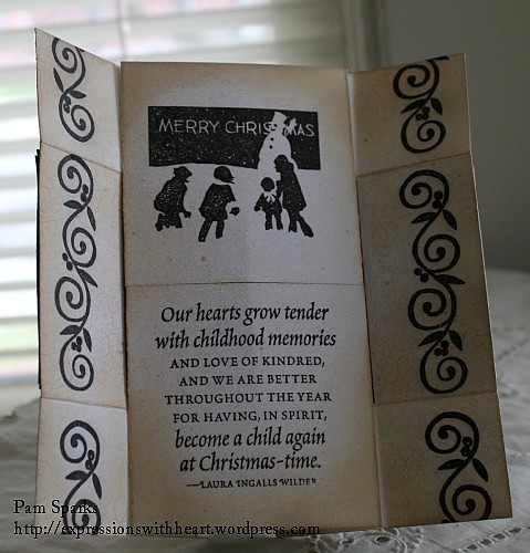 4. Wow! This is beautiful, Pam! The one I made looks so childish. It’s nice to see that it can be done with a theme more suitable for adults. It is just beautiful and I love the sentiments. Thanks for sharing this with me.