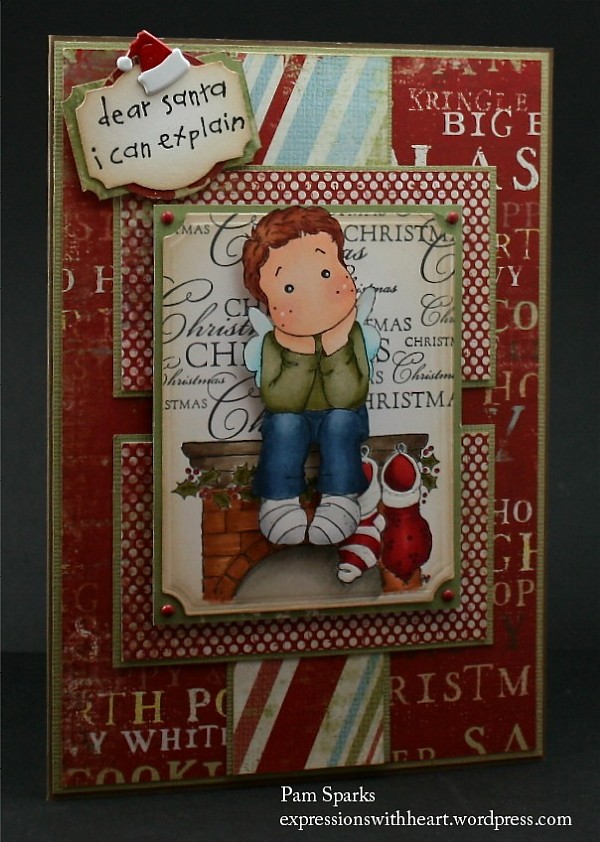 2. Pam, what a cutie this is!!! Your coloring is so marvelous and this setting and sentiment are just priceless!!! Beautiful job!! Best wishes to you for a wonderful holiday…Merry Christmas!!! Hugs..Jacque