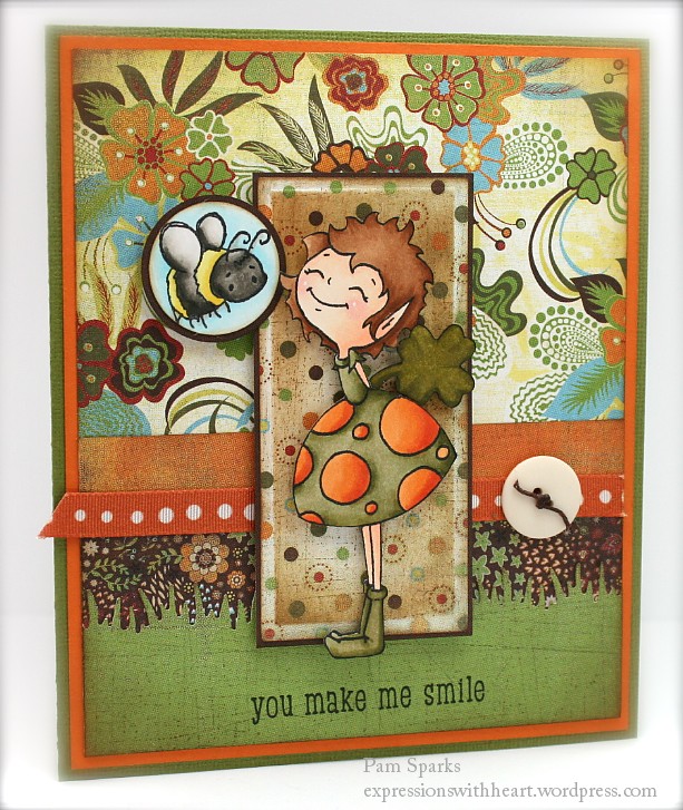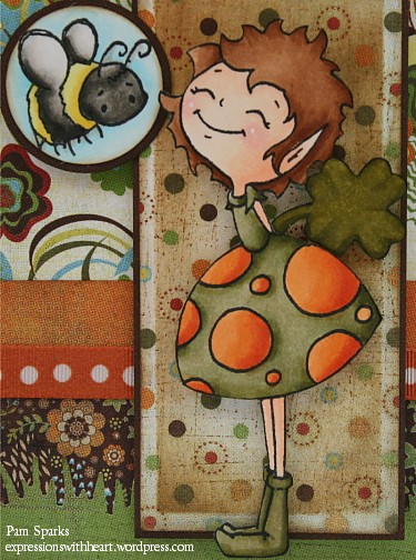 1. Now I love this card, Pam. No, I REALLY LOVE this card, Pam!!! The DPs you used is perfect, love how you did the bee, love your design, love your coloring, love how you made this image sooo adorable. Love, love, LOVE! This card makes me SMILE!!! Have a great day Pam, you started my morning with a smile!