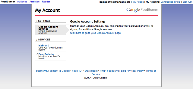 • click on “Google Feed Burner” it’s straight across from MY ACCOUNT