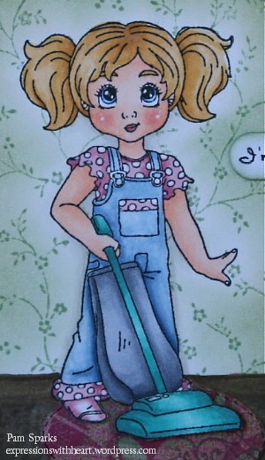 3. Excellent Pam , although I hate house work but its a cute stamp and fantastic colouring as ever