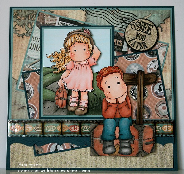 3. Oh Pam, this is so gorgeous, all so colorful and match.. love your coloring on Tilda and Edwin.. Layout using all those papers is so perfect.. Great card.