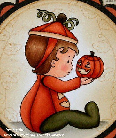 Oh Pam, how wonderful! You can just see the wonder in that child’s face over the sweet pumpkin. Wonderful stamp, wonderful and delightful card with perfect color choices.