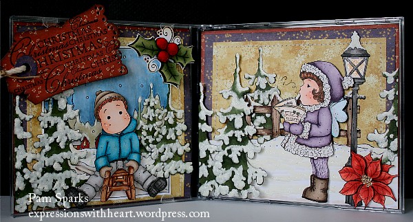18. Pam this is a winner.. I am absolutely in love with your CD idea.. Your coloring is so perfect and the ideas, embellishments, placements of your images tell a georgeous story on both sides.. I am sure it will be created by many who love it also.. you have come up with a unique idea… Congratulations!!