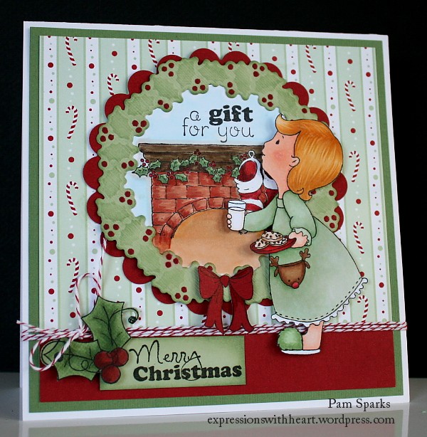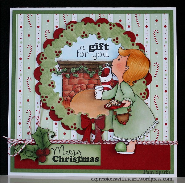 13. Awww Pam another adorable card.. this one is just too cute… you are trying to be an enabler.. I swore not to buy anymore stamps until after Christmas but I so so love the fireplace… so adorable and you can do so much with it… and you did .. love your Amy, the wall paper, the double wreath, just everything.. great card!!!
