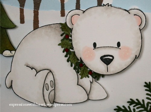 3. You are so creative !! Who wuld have thought to put a wreath around the bear’s neck. It looks so natural. You can do a card without several dp and it looks great.