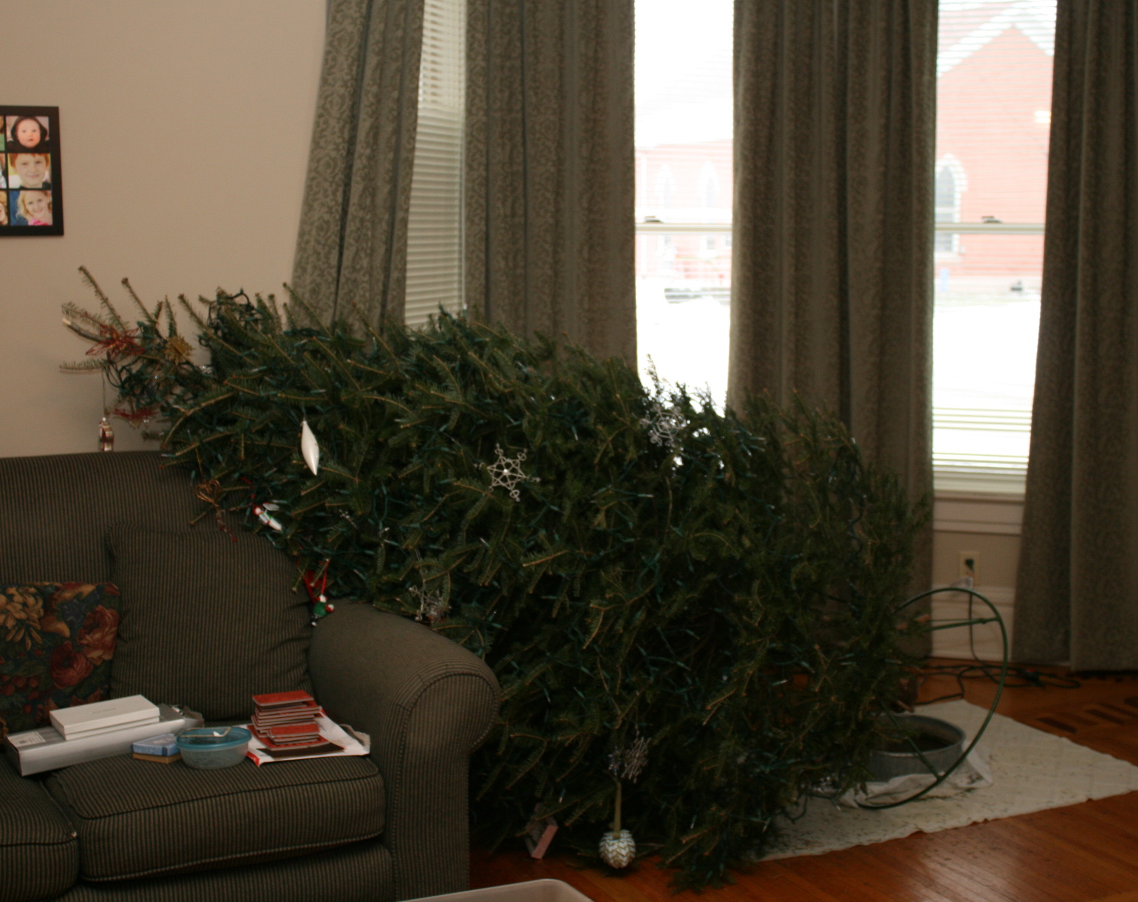 3. I think your tree was trying to make a break for it! Or maybe it just wanted to check out all that new rubber and thought you were cruel for teasing us…. erm, I mean it 😉 Thank goodness you didn’t have many ornaments on it, hopefully nothing was broken.