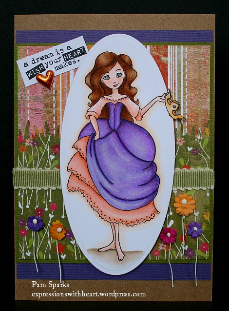 Pam, love this stamp.. these are going to be a great stamp set.. can’t wait until the 3rd.. you did a beautiful job coloring her and the background is just too lovely.. great flowers and background..
