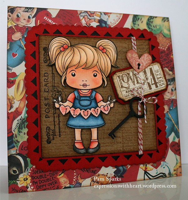 1. She’s a cutie for sure. I just love the key and lock. Have to get that! I have old Valentine’s like the background paper. LOL! Shows my age.