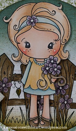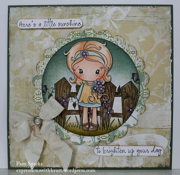 7. You’ve made her adorable!!! Love how you’ve used the sanded stamp on the background and ribbon! You’ve managed to blend those colors beautifully to match as you always do!!! Fantastic card Pam!!!