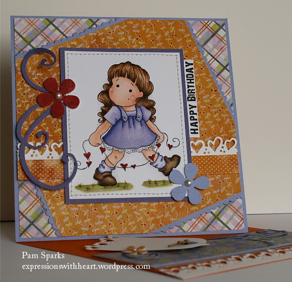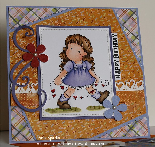 5. Oh my gosh Pam – this is the most darling image! She’s adorable, and your card makes her even more so. I love that you used this pattern, and that you showed us all how easy it is! What a masterpiece – you are amazing, my friend!