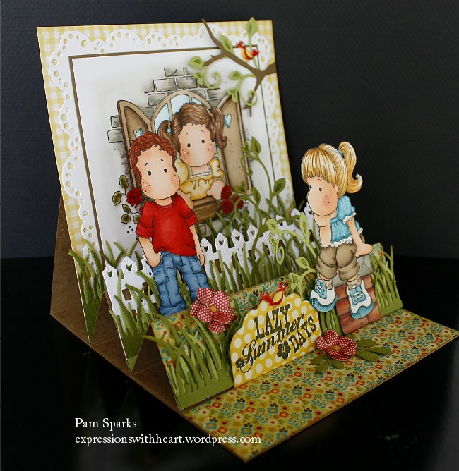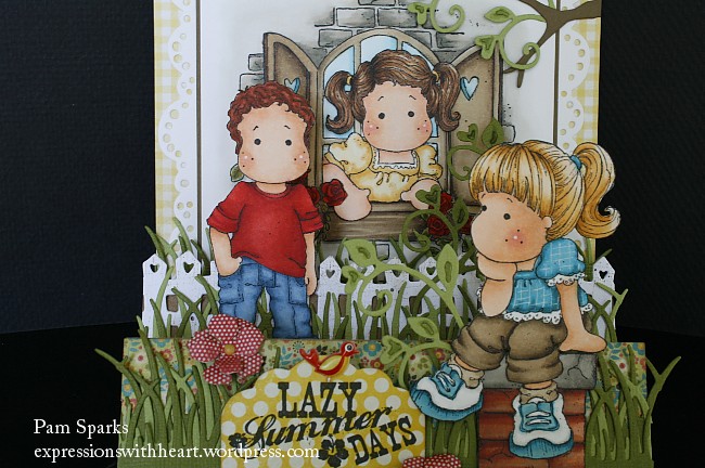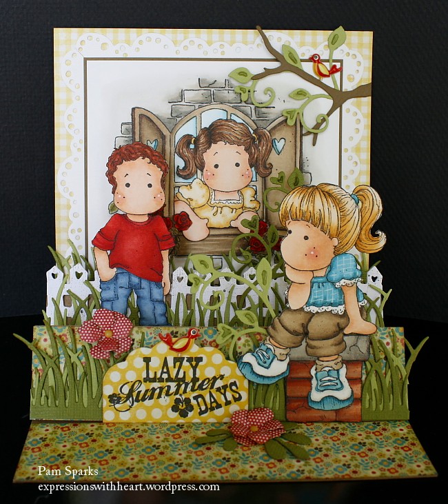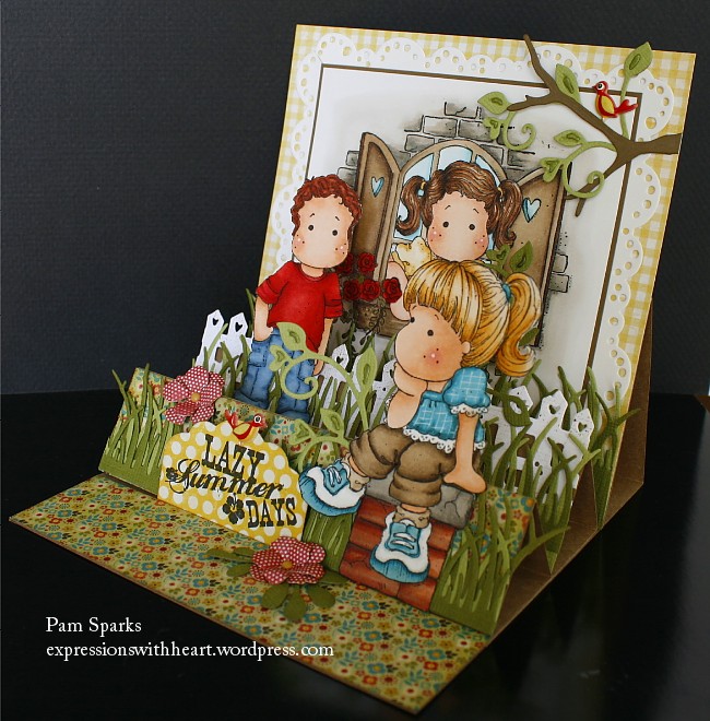 4. Wow! Pam, This is so adorable, I love those sweet images and your colouring is out of this world may I say so is your imagination to have created such a scenic and memorable card. Love it sweetie.