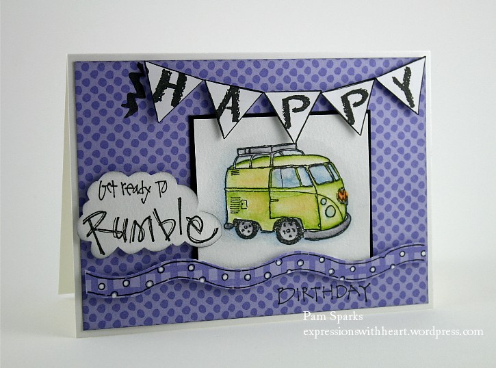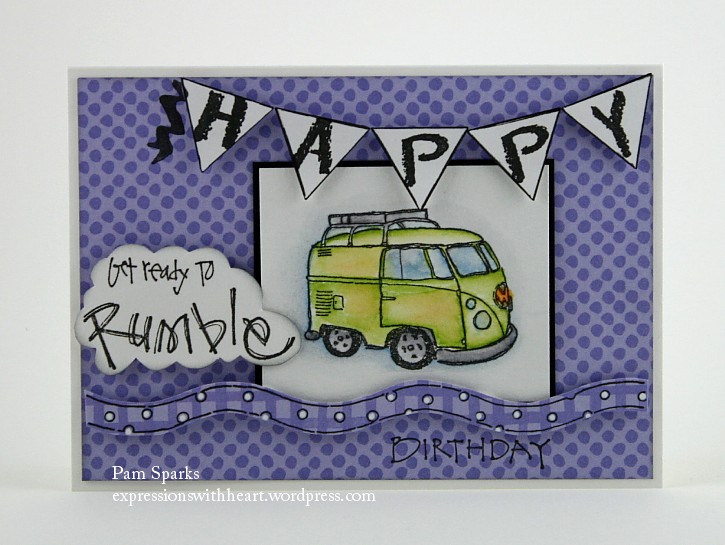 5. Super Great card !!! I love the lime green VW bus. I do remember seeing those on the road way back when ……………. !!! The purple background is perfect.