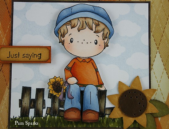He is so adorable Pam.. love those sunflowers.. Gotta order him and the sunflowers…. I’m, getting lazy or maybe just saving money??? Who me??? No I’ll order them…. Will get them and surprise you soon… Love your card an love all the ones you have been doing lately.. Great going girl..
