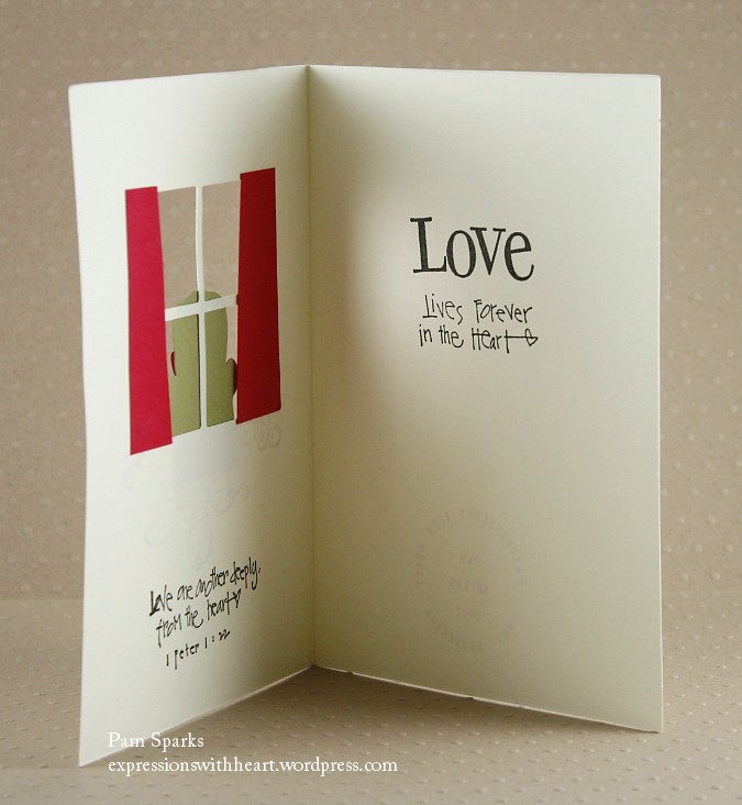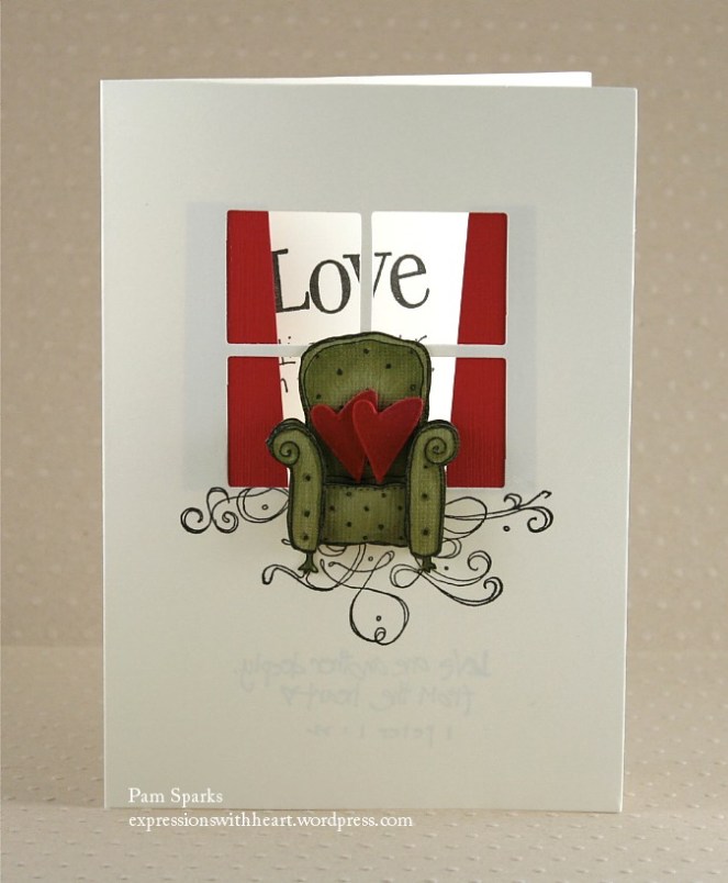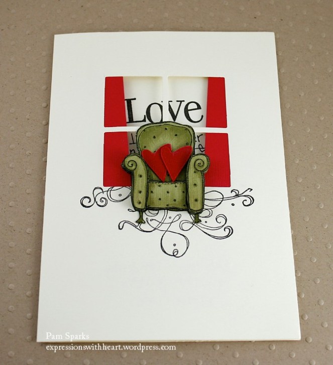 9. Now Pam this is what I call easy, simple and quick and yet reminds me of back into the 60’s.. a great idea of the window and the swirl design below the chair… A great clean design yet something to be proud of and something you would see at Hallmark for 8 to 10 dollars… Great job of course would see something like this from you..