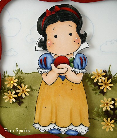 14. Such an andorable card for your grand-daughter. Such a lovely background you created for Snow White. Beautiful coloring, gorgeous layout. the set up is exquisite, with the roses and apple.