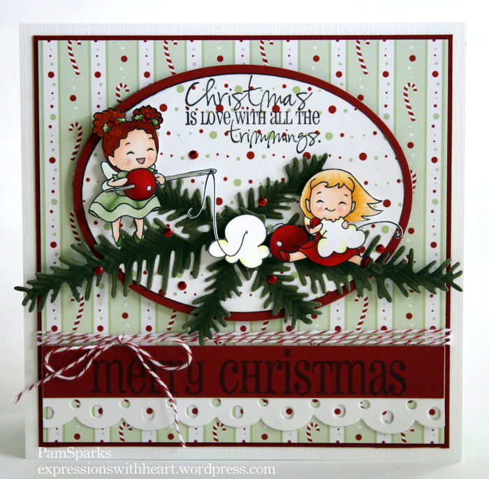 1. Don’t you even THINK about a vacation! I’m pretty sure that my inspiration would rather travel with you than stay here with me! lol…. This card is so sweet. Jilly and Daphne are having the time of their lives! Making Christmas memories! Great card, Pam – love those pine boughs, and the berries, what did you use for the berries? Thanks for sharing another darling creation.
