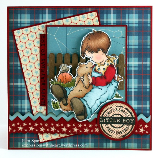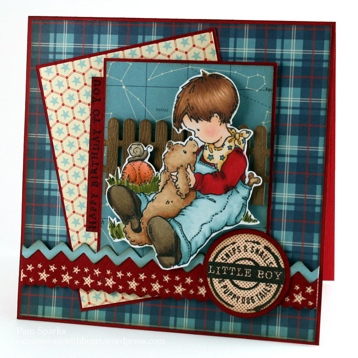 5. You combine the cutest things Pam! Love the star papers along with the plaid and your cute trim and embellishments besides the wonderful coloring of this cute boy and puppy!!! Terrific work!!!