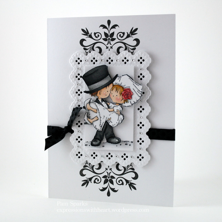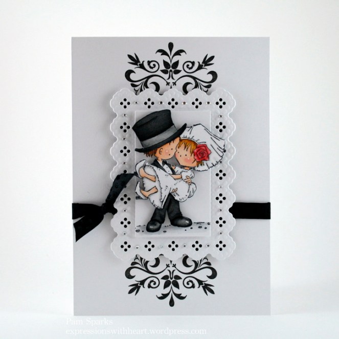 6. CONGRATULATIONS, Pam!!!!!!!!!!!!! Love Marianne Designs and looking forward to your upcoming projects! Your cards are spectacular…love your layered tree and that bridal couple is too cute for words!