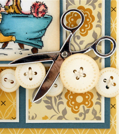 1. Totally AWESOME!! What a divine creation. Love your coloring and those buttons are adorable. Those sissors look real. ALL SO FABULOUS! I guess you can tell that I love this card!