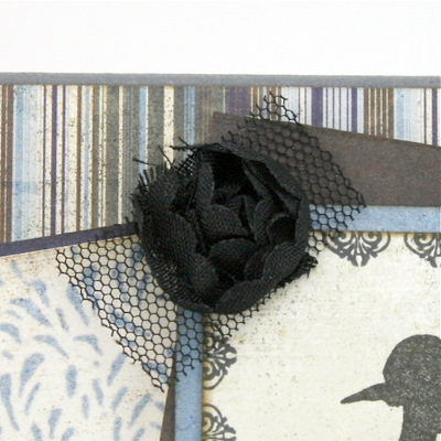 This is the Basic Grey Granola 6×6 paper pad. The fancy black rose is from Marianne Designs also… comes as a strip of roses and I just cut one off… love the netting that it comes on! I couldn’t make out the detail of it in my card photos so I took an up close photo and really lightened it. Might have to move your screen to see it… they’re pretty.
