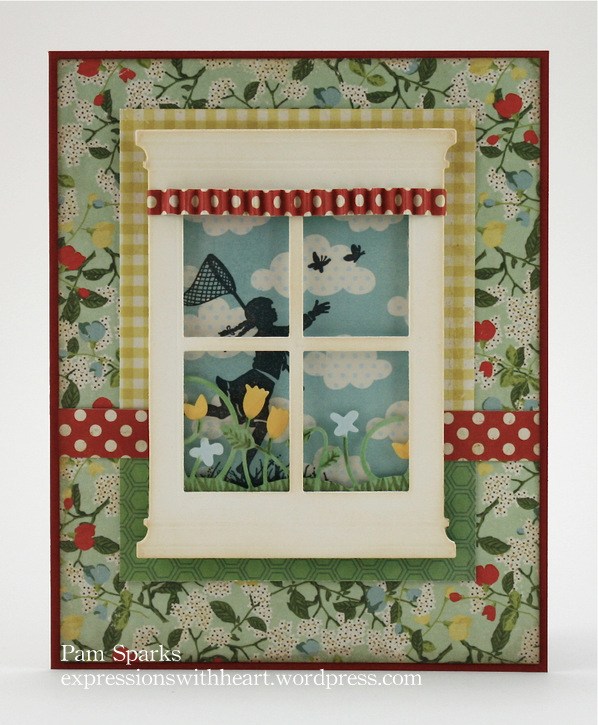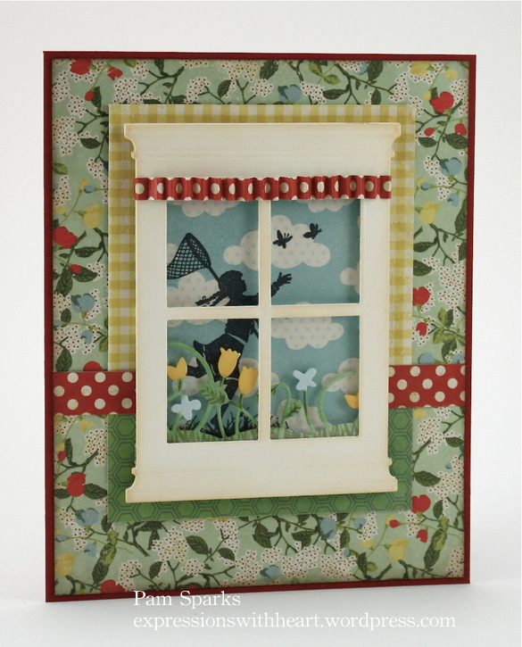 1. Pam, your window is really sweet. Love that DP you’ve used. And the curtain topper – adorable!! Thanks for the video on storage ideas for these dies. I just keep mine in the envelopes and have them in a small basket that I “flip” through.