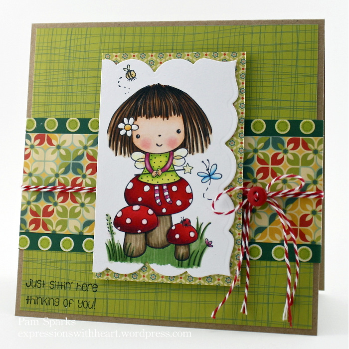 Sweet!! Mimi is so adorable sitting on top of that mushroom! Love the papers too.