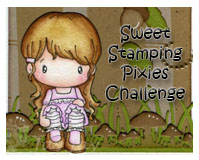 Cute little magical Mimi… colored with Copic Sketch markers and paired up with Cosmo Cricket 6×6 pattern paper. She’s ready for June’s Sweet Stamping Pixies Challenge! The theme this month is Summer. Mimi wants you to come play with us! A prize to be won … all the info is HERE!