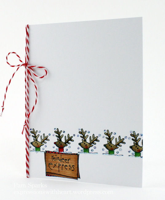 You can find this Reindeer Express stamp in the store HERE.  Some copics… some star dust stickles… some twine from the Twinery and there you have it!  Pure cuteness!