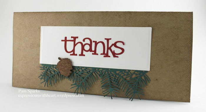 Here’s a THANKS card that I made to link up to some CAS challenges.  I’m so happy to say that I’m using this new Pine Needle Border die from Memory Box already!!!  I’ve only had it two weeks!  woohoo! lol