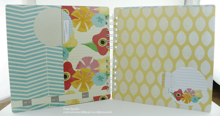 5. I love blue, lemon and pink together in the mini book. I haven’t used my bind-it-all in ages. Must get it out and dust it off. Like the stamping on twill, what a gr8 idea, might borrow that,