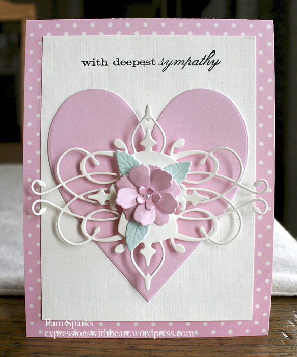 You have the best taste Pam with tons of talent to go with your very classic taste. Your cards are never overdone – always just right and I do believe you are the Queen when it comes to using die cuts. You always sell me kid!!! Beautiful work – my very favorite is the first one.