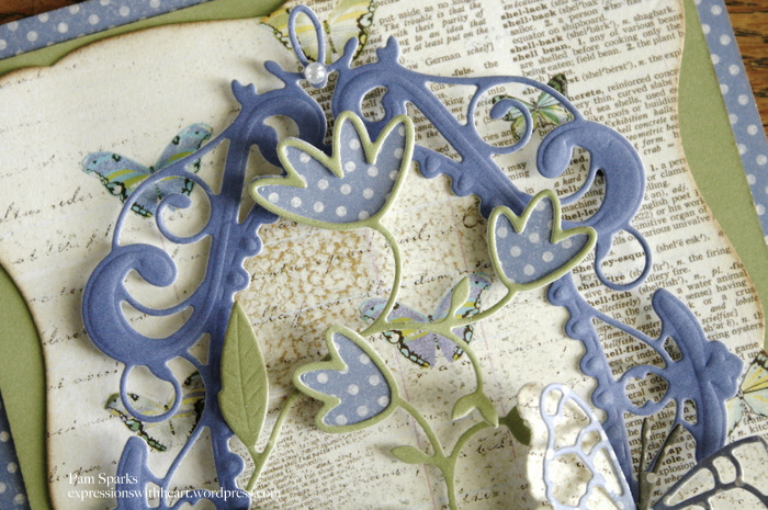 1. I love this one, the worded paper and the purple paper under the green die cut leaves. Your card is so beautiful and intriquet. You surely have patience.