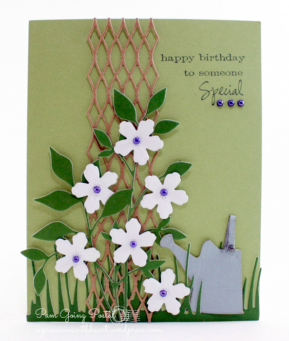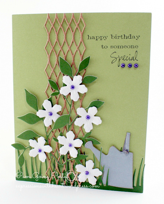 8. Hi Pam, both cards are very pretty but I LOVE the garden scene & all those wonderful dies you used. I also need to win the lottery so I could buy EVERYTHING !!! Seriously you do such amazing work & its always a treat to see what you whip out next. What DO you use to glue intricate dies with …. I really like that lattice die !!!