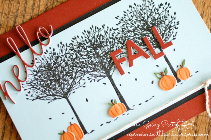 I really like the combination of the tree with falling leaves and the pumpkins with those adorable leaves – nicely ties together!