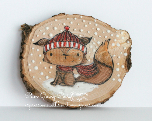 oh man,  I HEART this magnet!  Have you seen these already? Several gals doing them. Stamp from Purple Onion Designs.   I had Tim cut me a branch and the grandkids and I have been stamping them with either Versafine or Archival inks and then coloring with pencils.  oh, I LOVE CUTE! hohoho  The snow is the Art Glittering System Dries White Glue…love that stuff for snow.  It’s opaque, has a small tip…great product!  It’s made to use under glitter to make it opaque but it’s always fun to have another use for something!