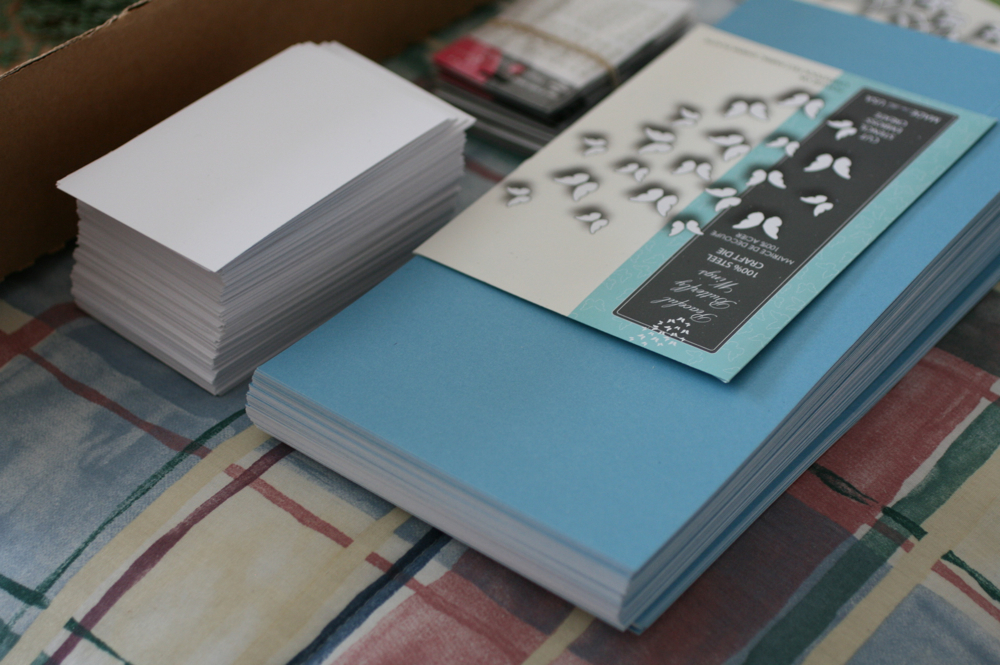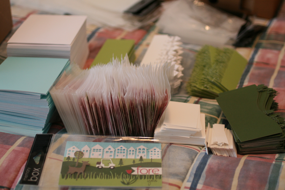 I so appreciate seeing all the work you put into the Great Escape….I hope it doesn’t sour you of the enjoyment of our craft. It’s a nice record of what goes into pulling off a wonderful time for all who partake. I admire your ability to keep everything in such neat stacks. I’m also quite jealous of those who attended. What a grand time you all must have had – it’s a beautiful site, too! I look forward to seeing the cards – I always marvel at the cards you create! Thanks for your generous spirit.