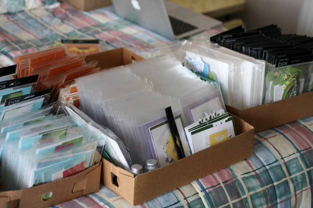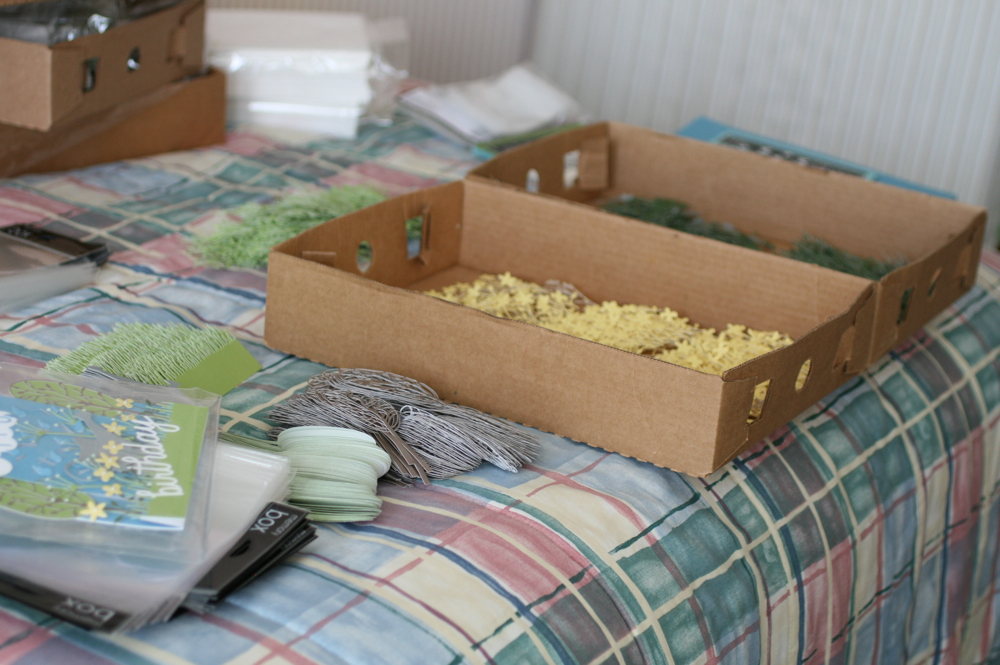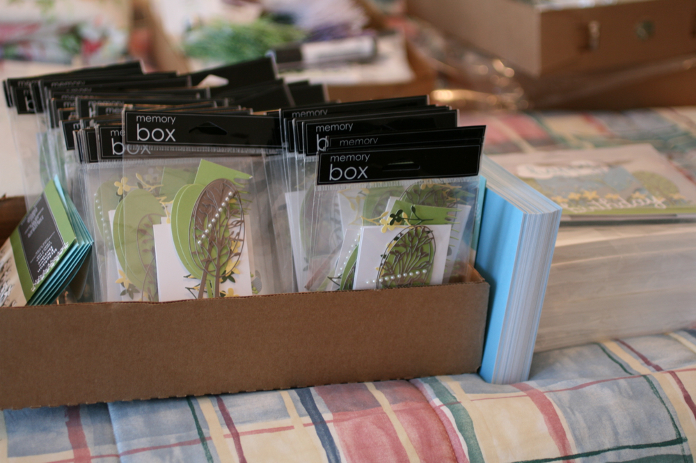AND it WAS great! I posted on the Memory Box Blog today… more pictures there. I spent the month of April preparing card kits for 93 women. A BIG undertaking… do you want to see some behind the scene pictures? I hope so! Since you can’t reply… lol