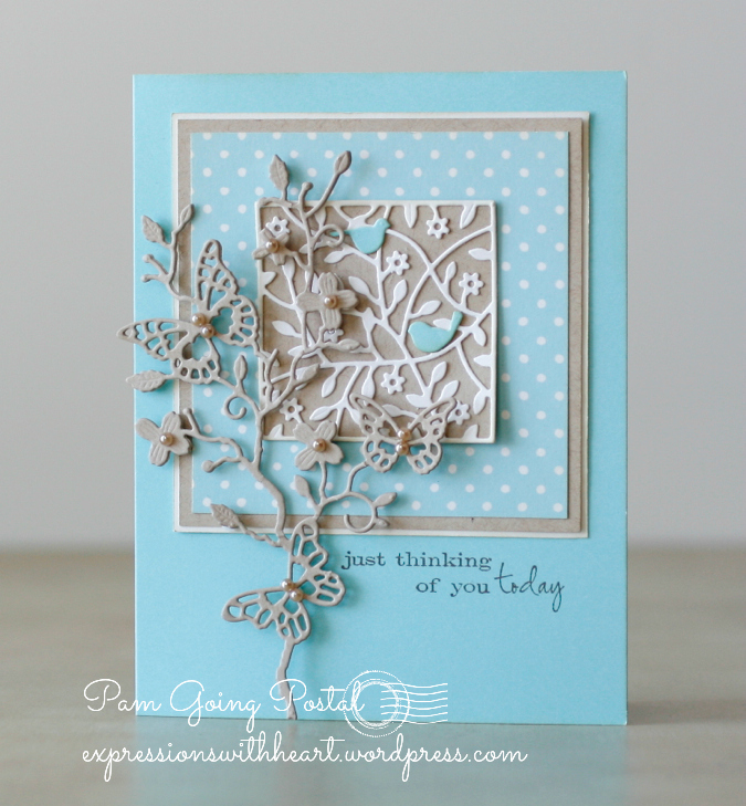 The next card reminds me of a vintage greeting card.  I love vintage cards and papers.  If I wasn’t making cards all the time,  I bet I’d be out looking for old cards and papers! : )