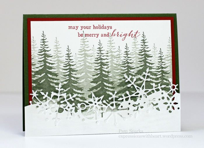 1. Perfectly beautiful Pam. … Perfect layers, perfect dies, perfect stamps & perfectly put together. These are wonderful … I especially love the blue with the inked embossing folder or maybe it’s the green inked trees … So much beauty all in one post. Love it !!!