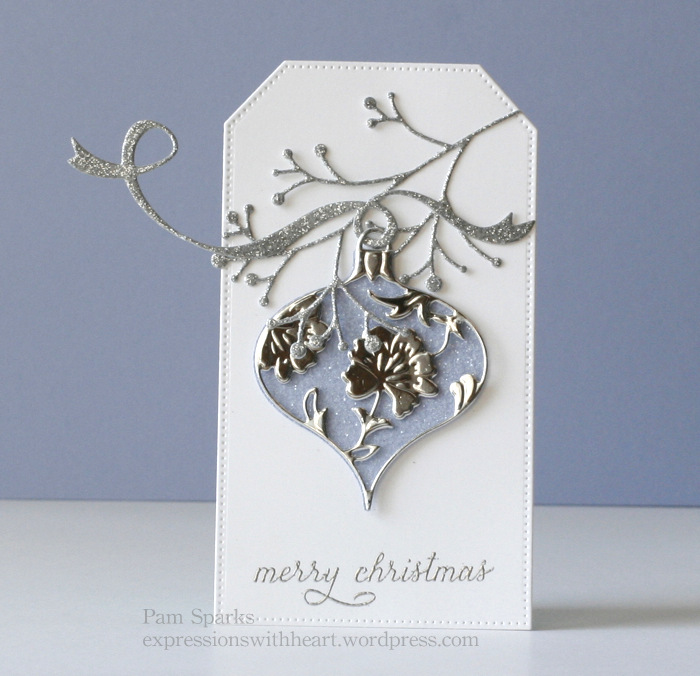 Pam…your tags and cards are beautiful with all that gorgeous glitter. My FAVE’s are the blue bulb and the pine tree with the branches. So very nicely done. Thanks for sharing with us!