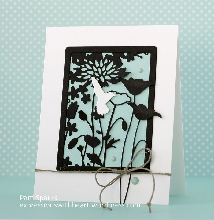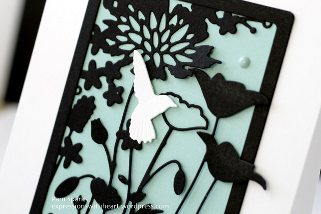 Oh Pam this is just gorgeous! I love the black die cuts over the colored paper and the splash of white! So pretty! Love it!