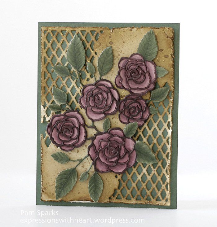 Beautiful card, Pam! Thanks for explaining how you colored and taped the rose die cuts. If I ever decide to buy one of these intricate dies, I will know how to do this technique!! You are SO creative!