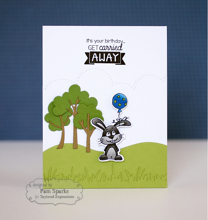1. Love the cards Pam. It was cute that you tied the balloon to the rabbit ear. I like the trees too. The sentiment is perfect too. Glad to see you back