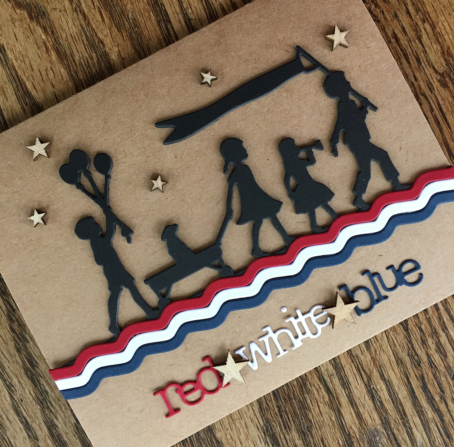 Absolutely adorable cards! I love the little campfire scene with the teepee!! So cute! And that silhouette of the parade of children is so darling! Love the red white and blue on the kraft! Awesome cards!!