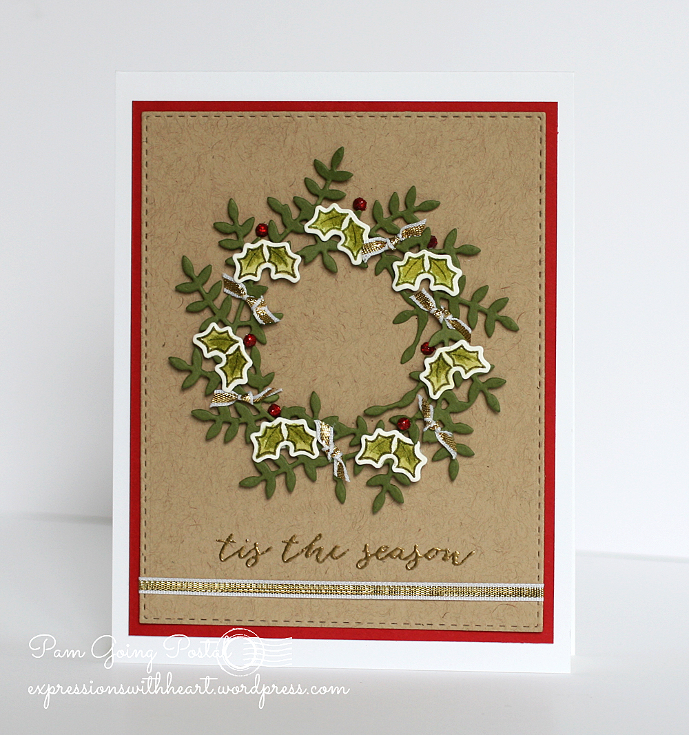 4. Love this card Pam. Everything goes so well against the kraft background. The tiny bows and red hollyberries are too cute. The sentiment is perfect. Beautiful work Pam.