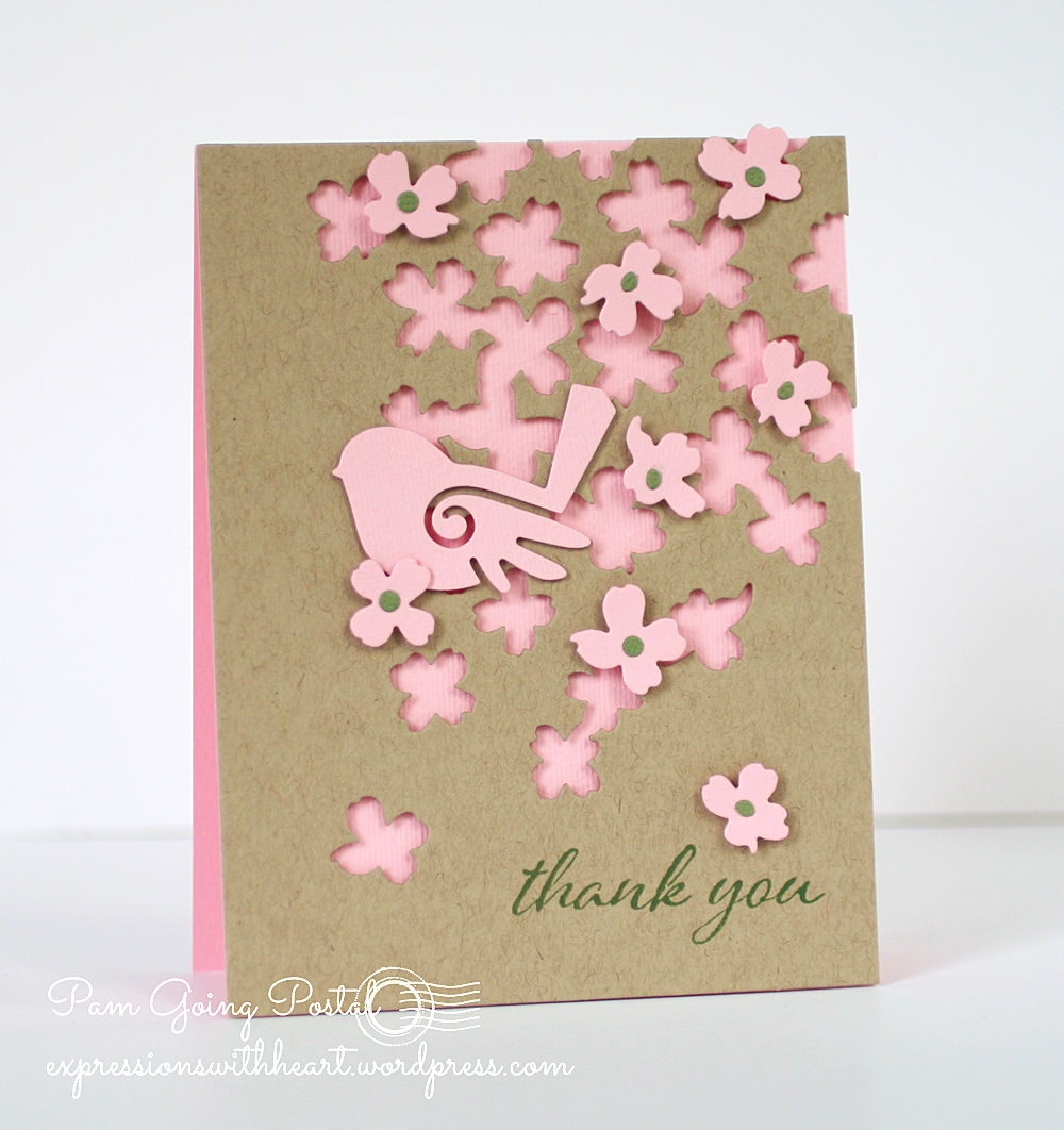 6. These dogwood cards are adorable. I love dogwood flowers. I planted a pink dogwood tree in my front yard and it bloomed every year for the past 8 years until a freeze killed it last February of this year boo hoo! Love the pink against the kraft background…so pretty. Looking forward to your TE cards. You made my day, thanks for sharing Pam!